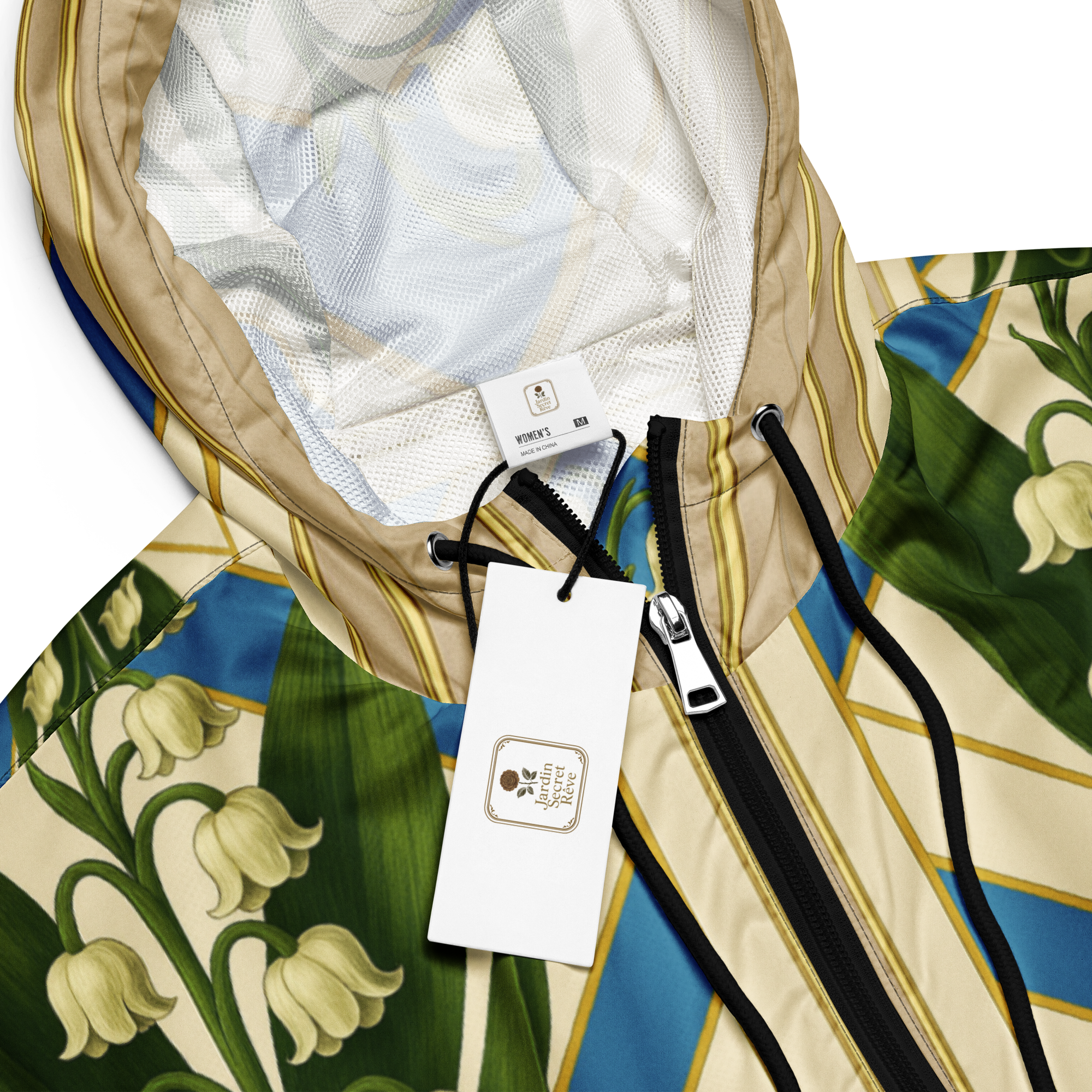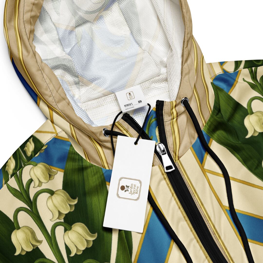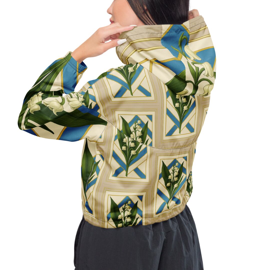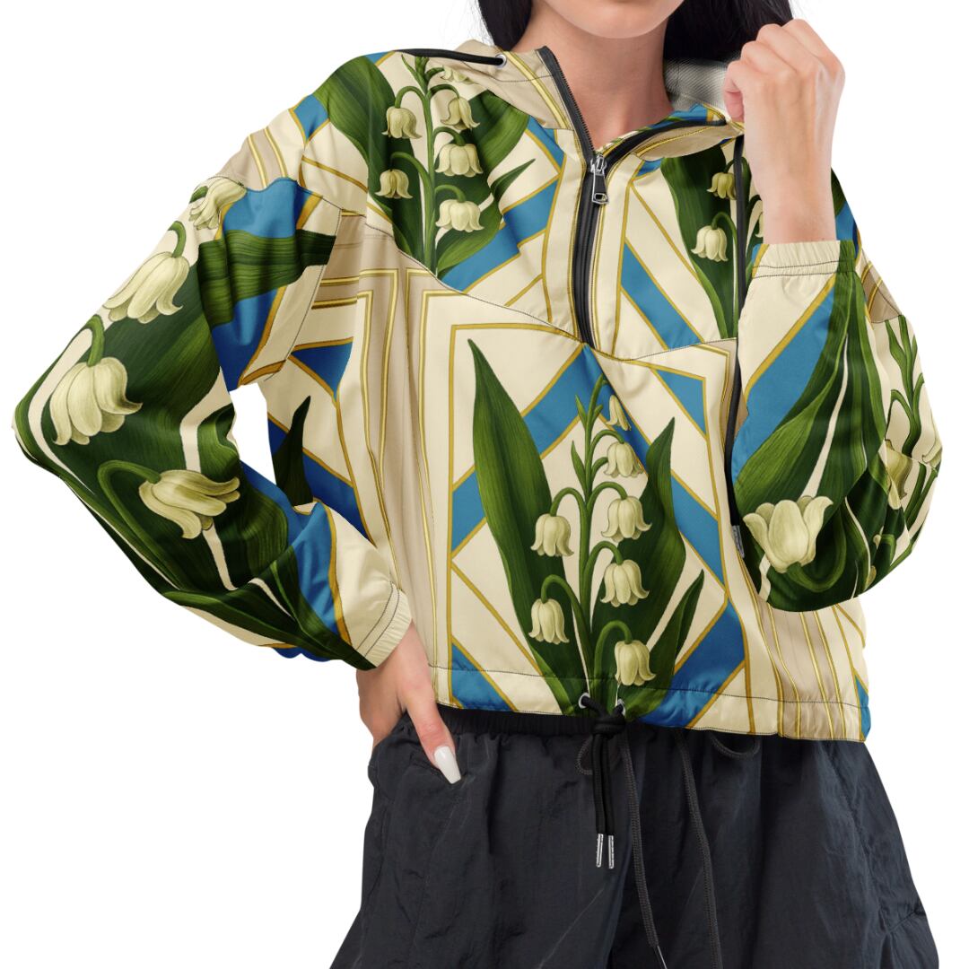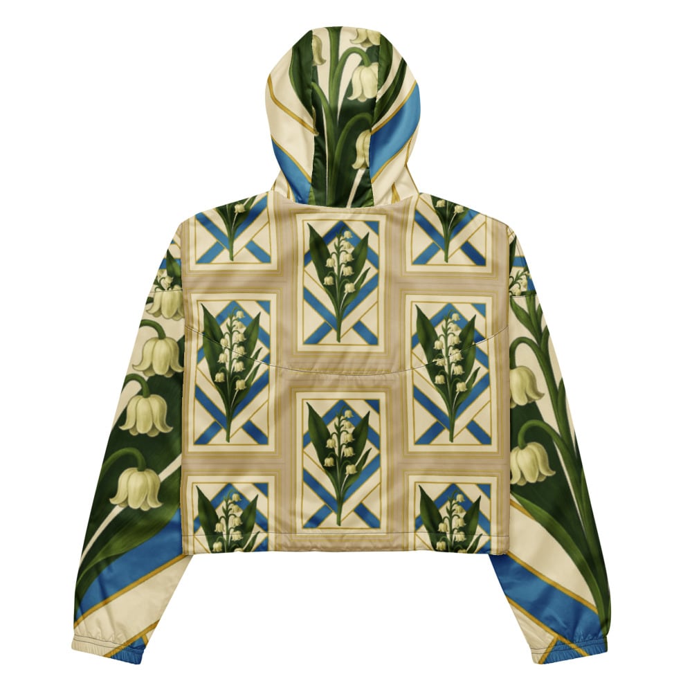 大胆に咲くスズラン柄が印象的なクロップ丈ウィンドブレーカー。