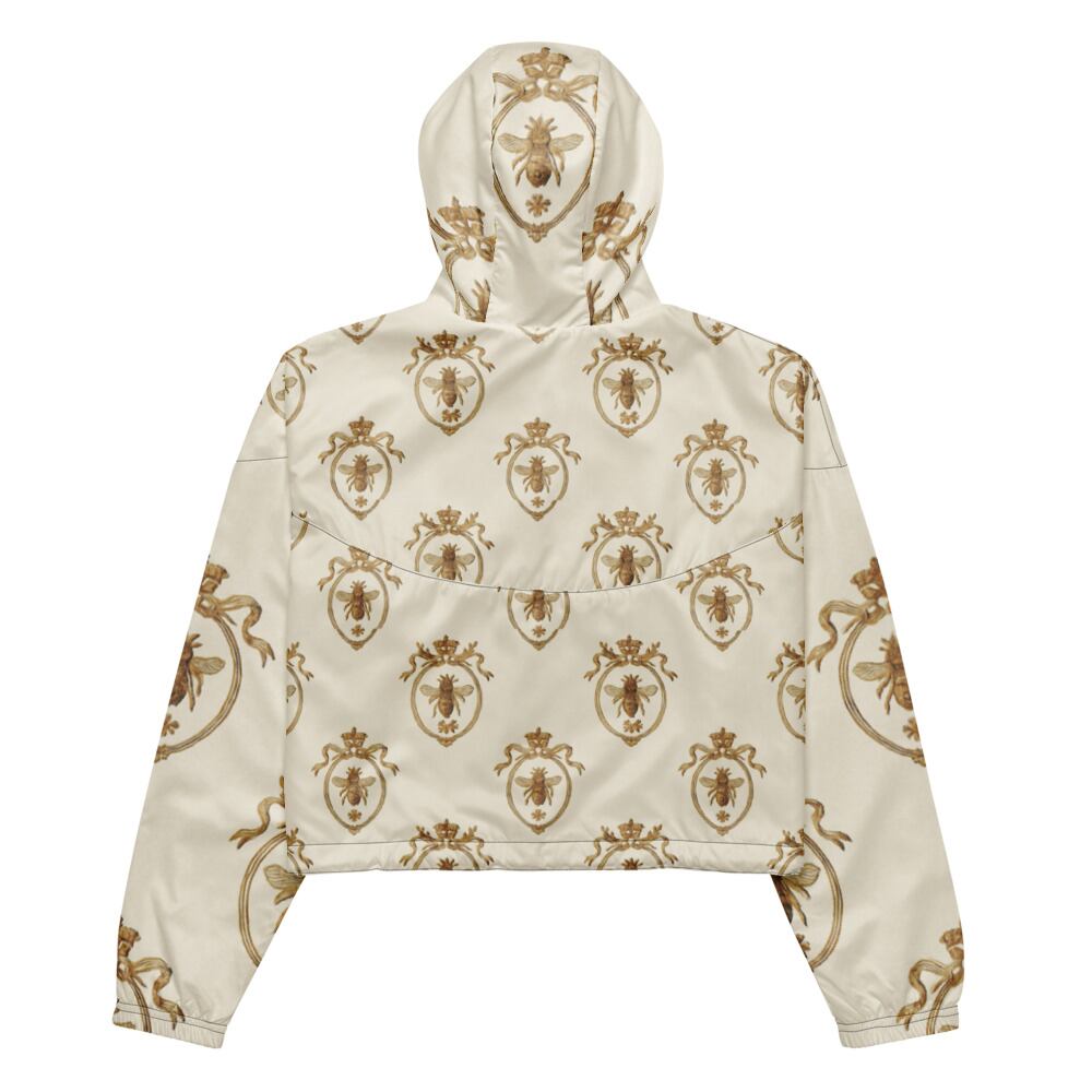 蜂の紋章が映える総柄デザインが目を引くクロップ丈ウィンドブレーカーです。