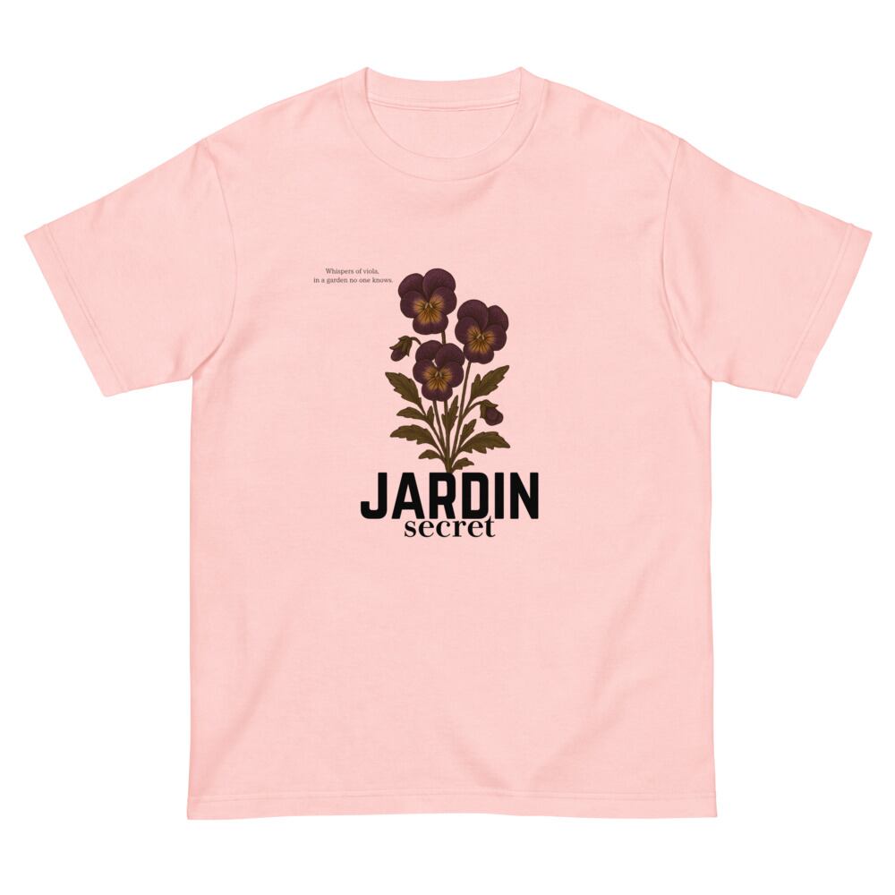 ヴィンテージ刺繍のように繊細に描かれた「ビオラ」が中央にあしらわれた、Jardin SecretのグラフィックTシャツ。