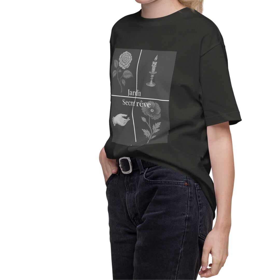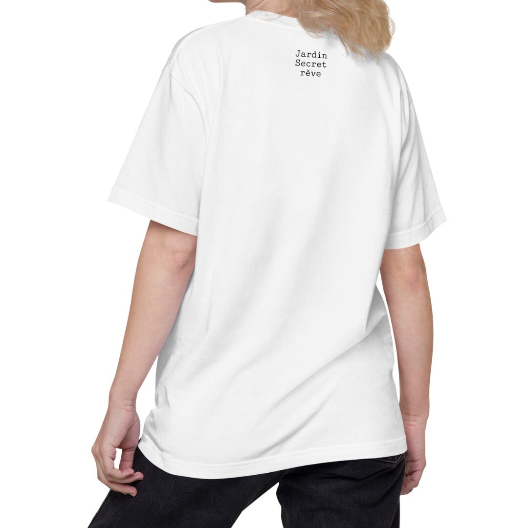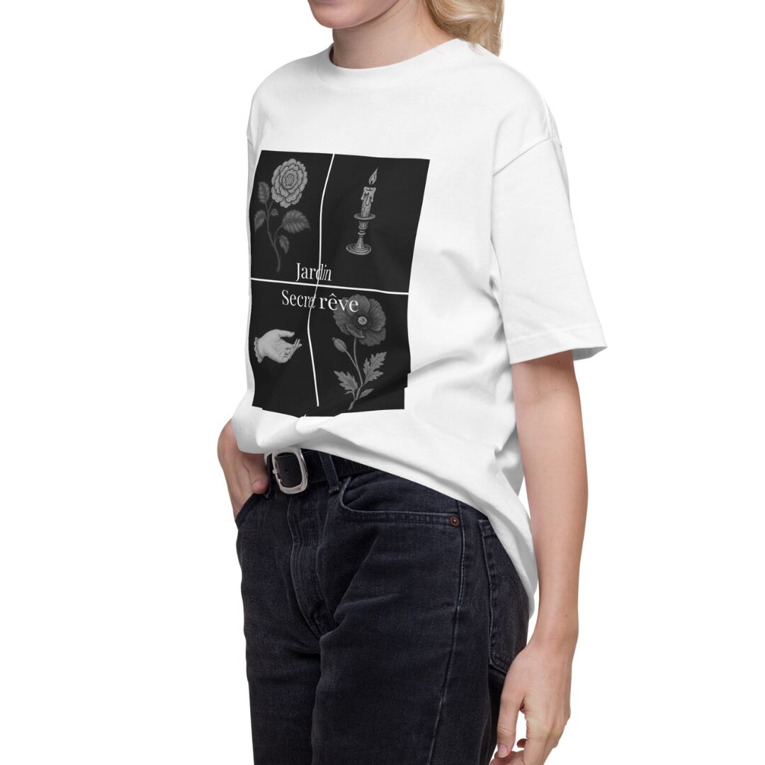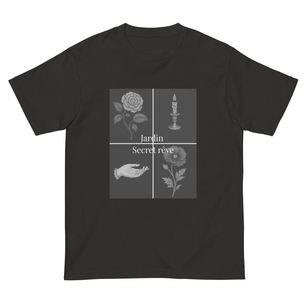 繊細な刺繍調アートを4面に閉じ込めた、幻想と静寂のTシャツ。