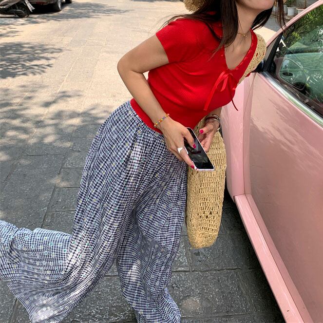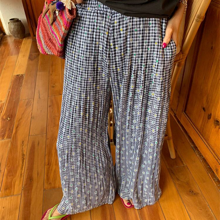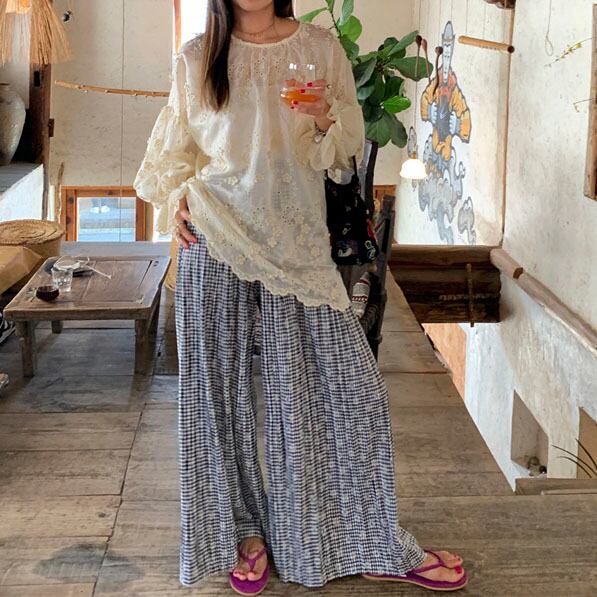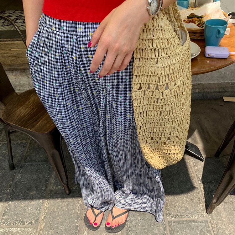 小さな花柄がさりげなく映えるギンガムチェックパンツ♡