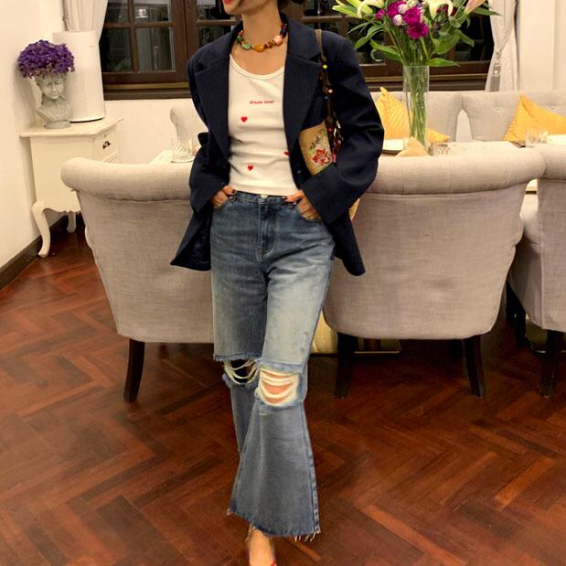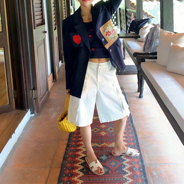 遊び心あるデザインながら、上品なテーラードシルエットで大人っぽく♡