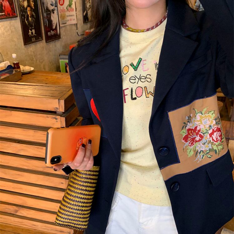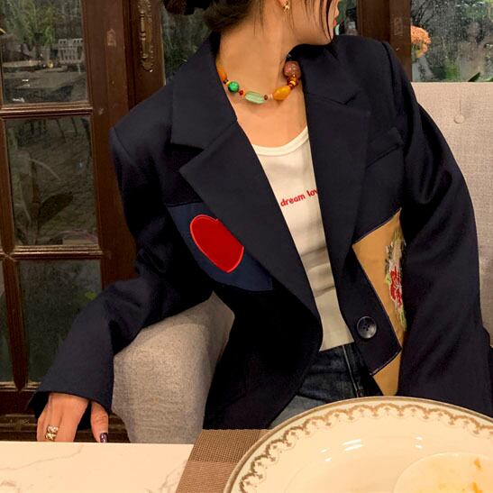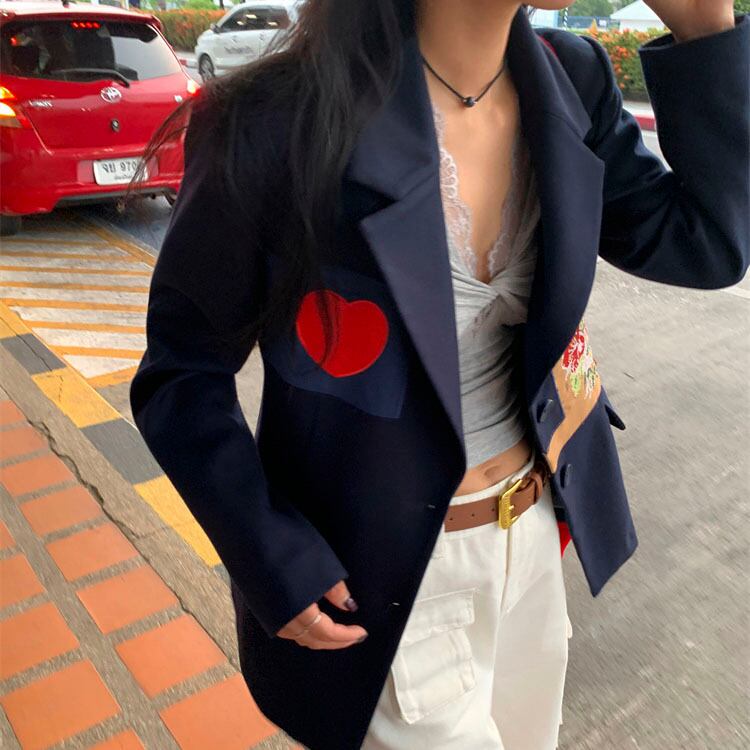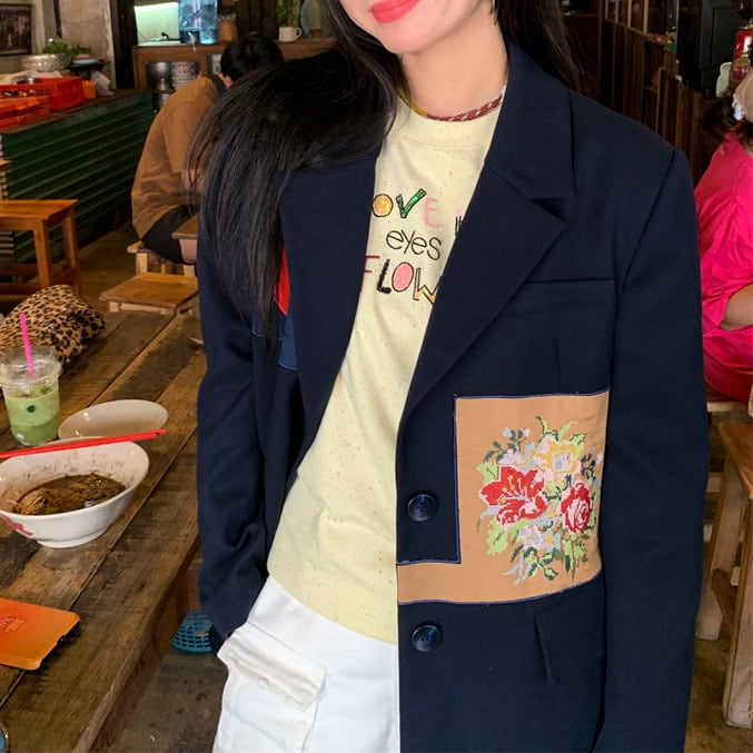 ハートとフローラルのパッチワークが目を惹くジャケットです。