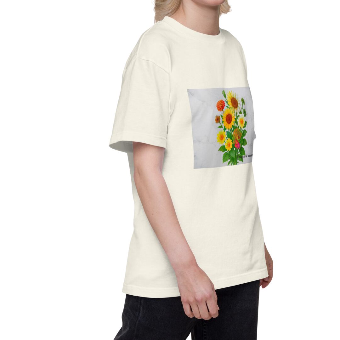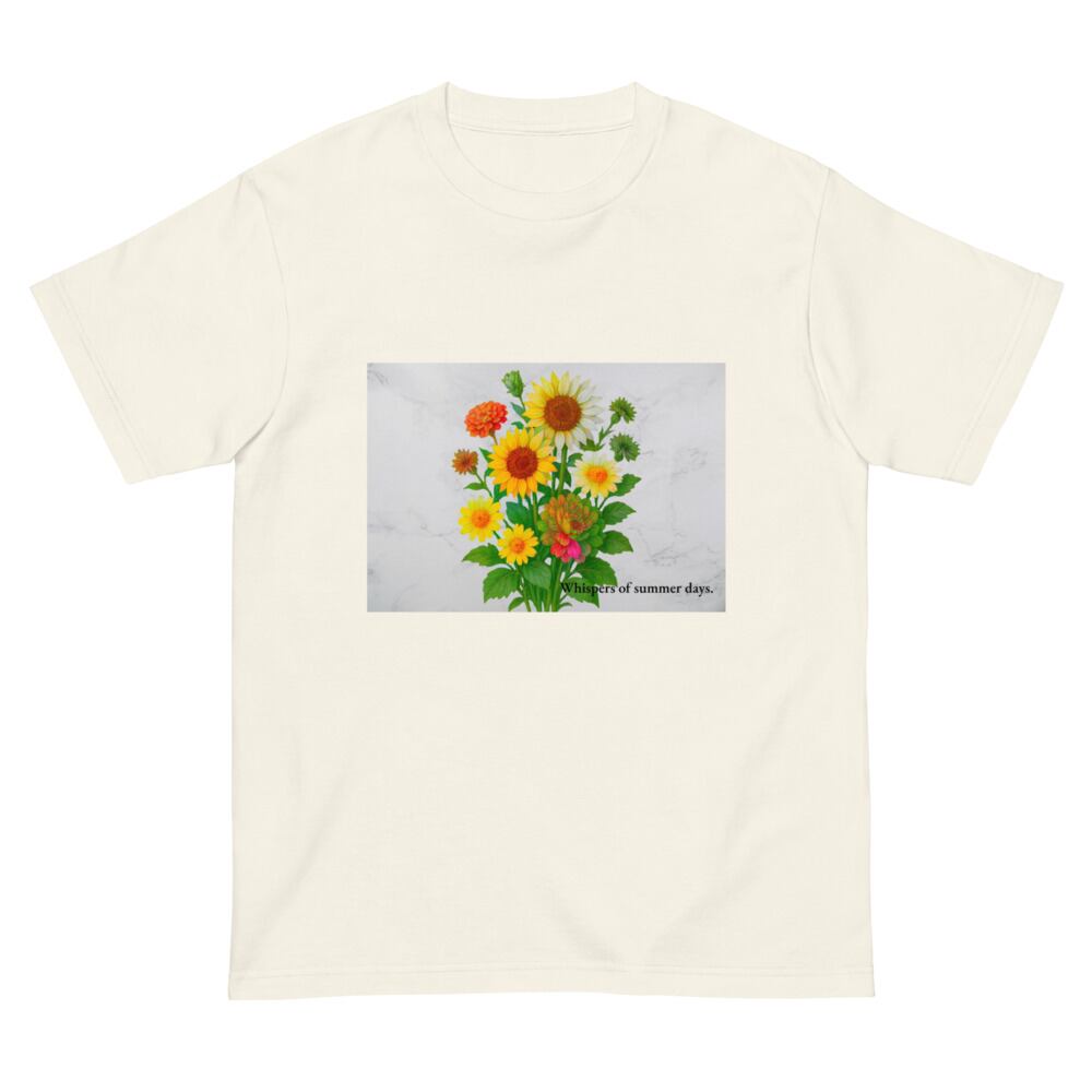 大ぶりのフラワープリントに、詩のようなメッセージを添えて。