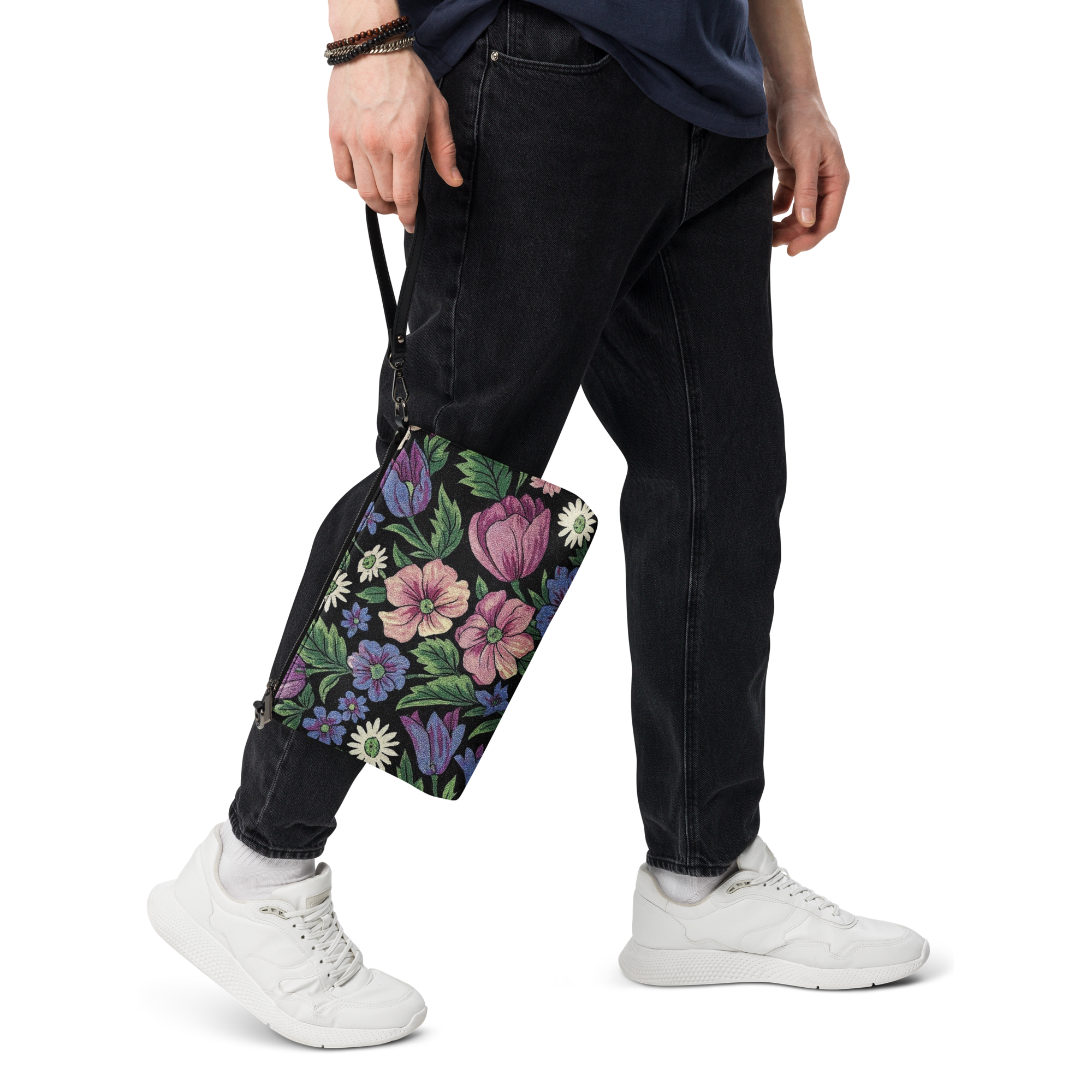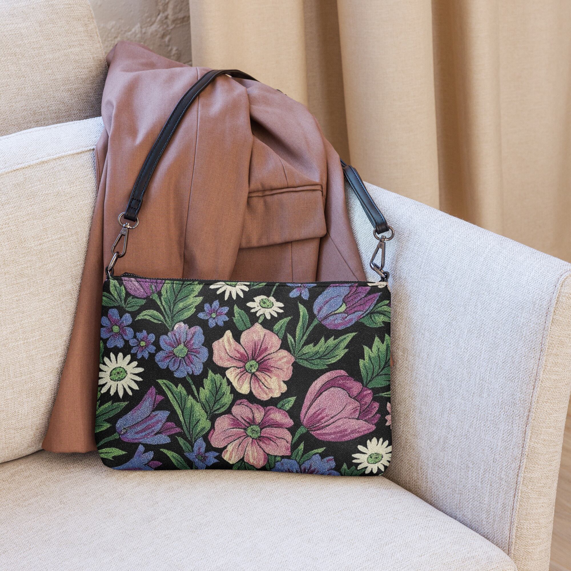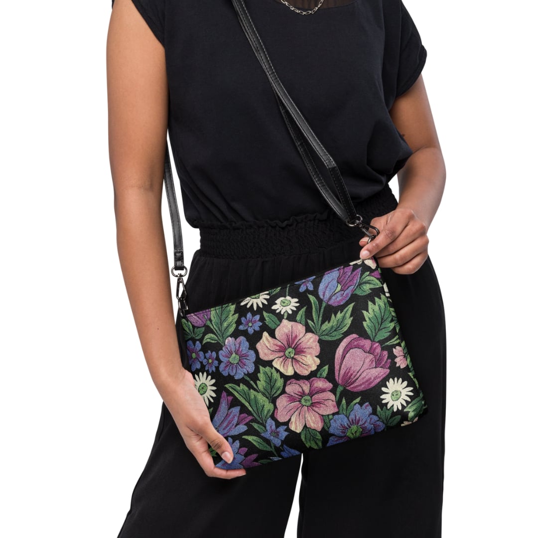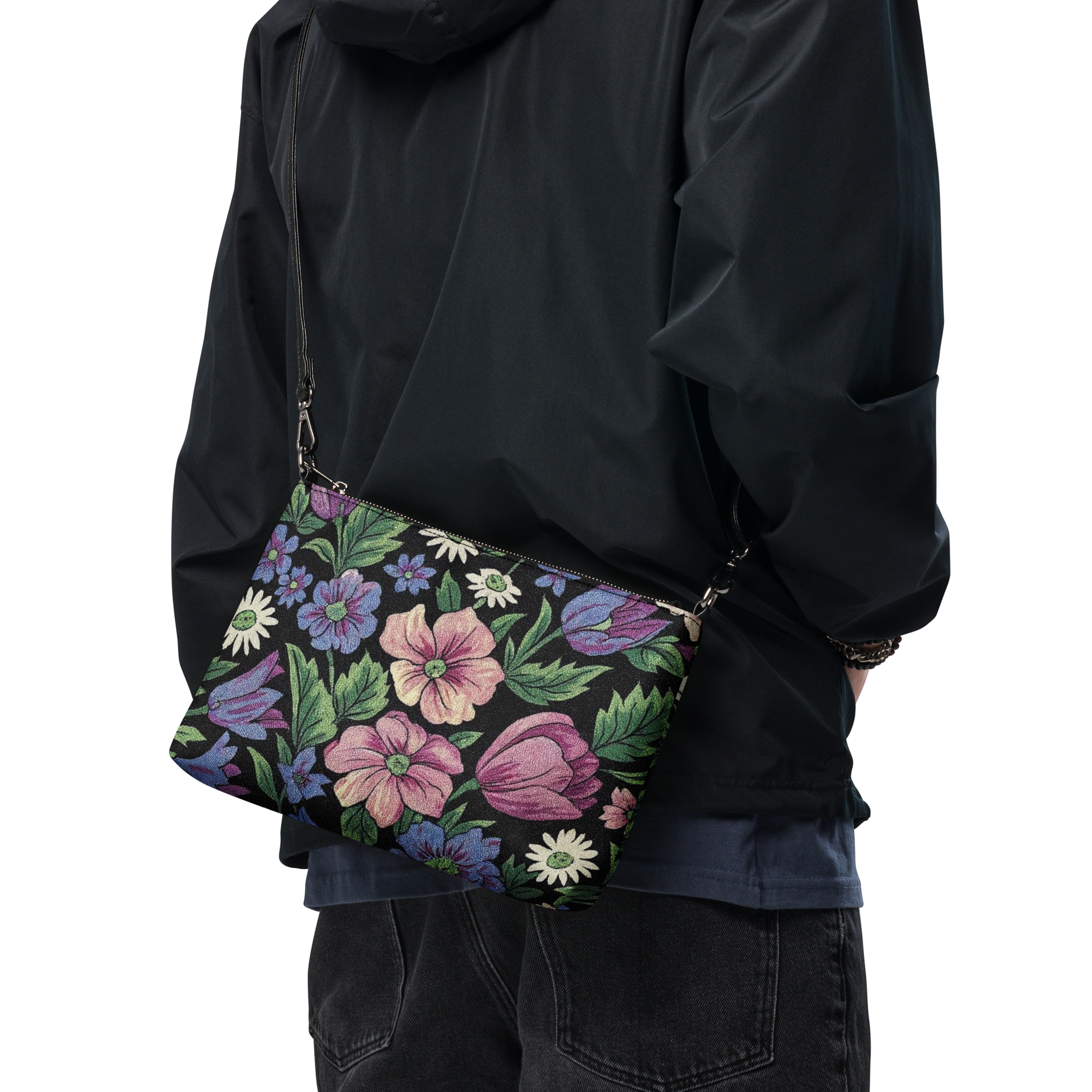 大胆で懐かしい総柄プリントが目を引くショルダーバッグです。