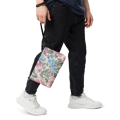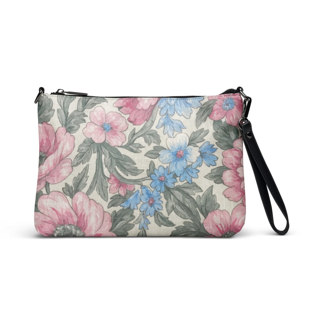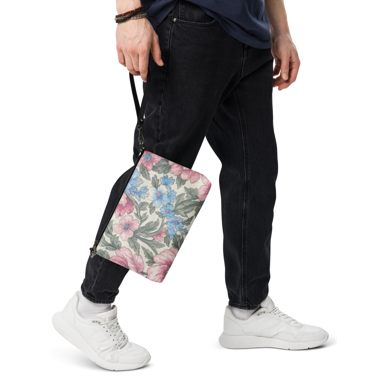 柔らかなピンクとブルーの花々が、くすんだグレーグリーンのリーフと共に咲き誇る、繊細な水彩風デザイン。