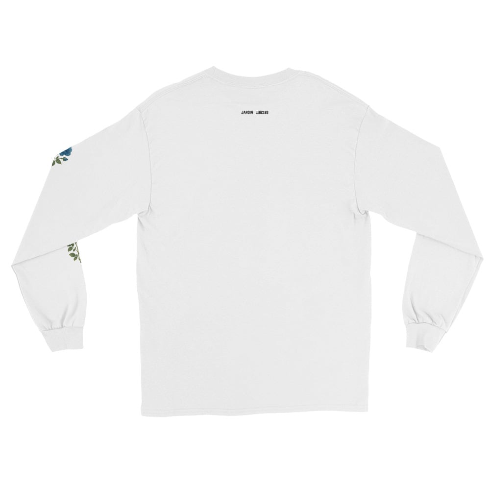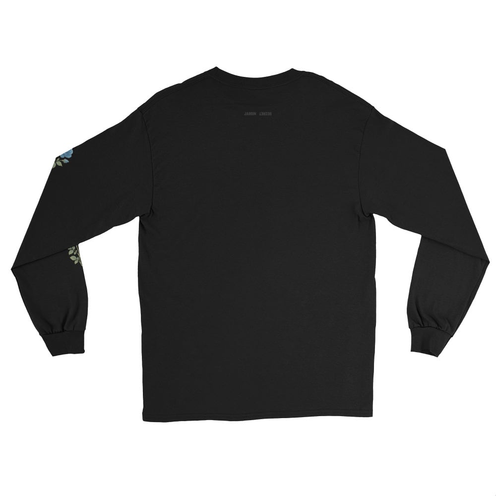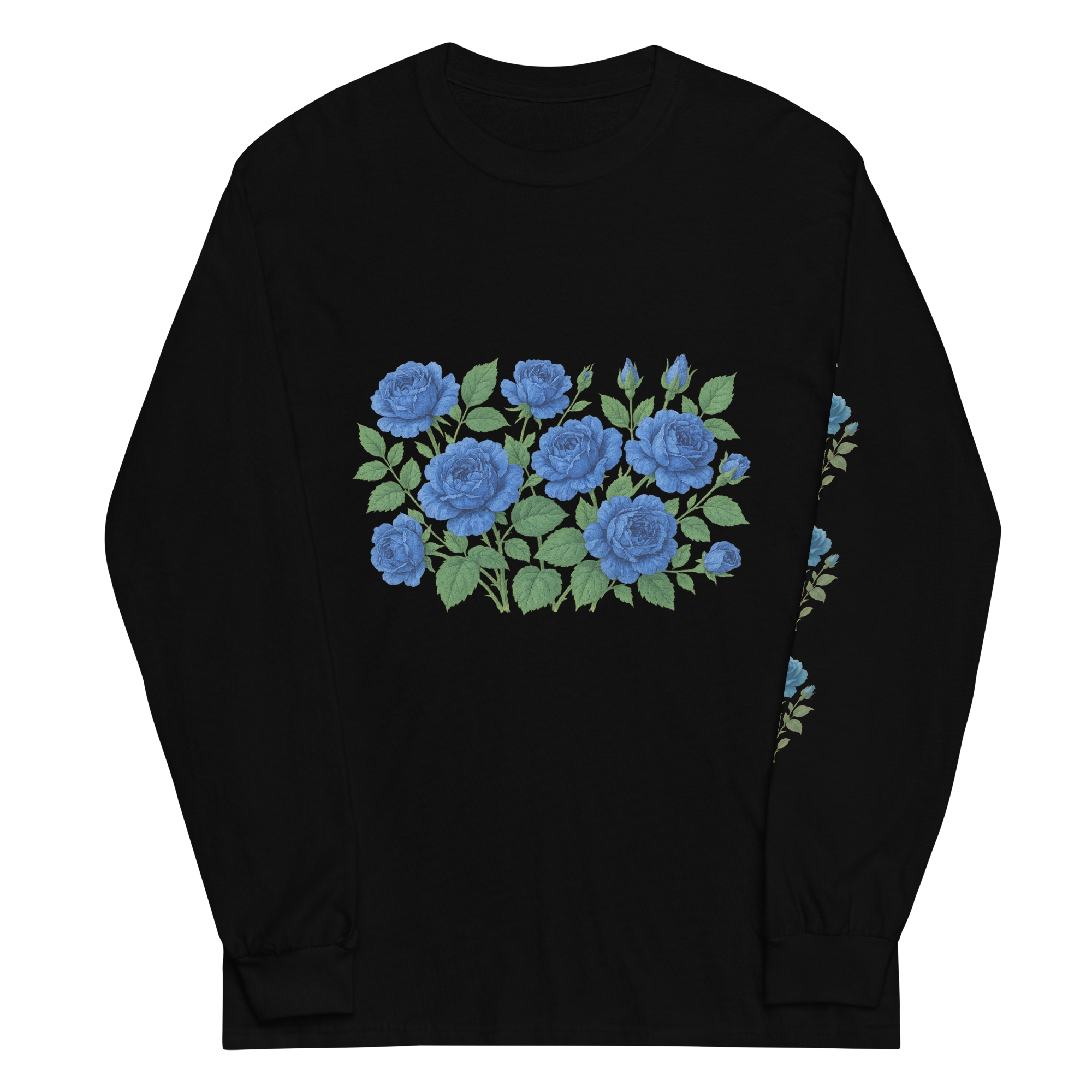 神秘と希少性の象徴である青い薔薇を大胆にあしらったロングTシャツ。